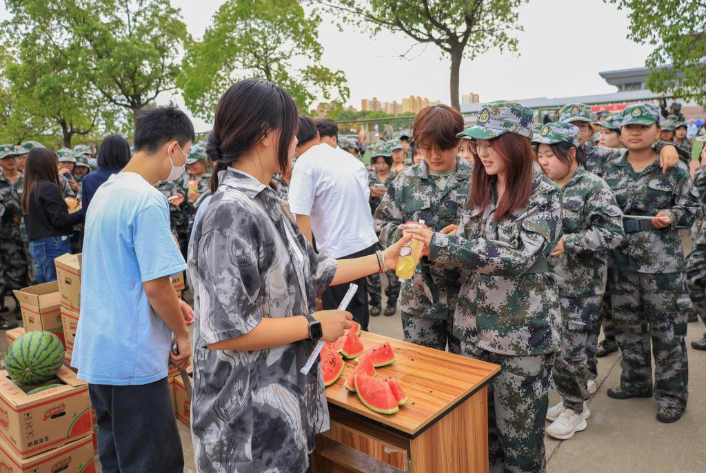 “同学,快来品尝刚刚切好的西瓜!”随着军训解散哨声响起,已经在南田径场门口等候多时的动画专业2021级的汪润向新生们喊到。当看到桌面上已经切好的新鲜西瓜时,“小绿人”们严肃的神情瞬间松弛下来。9月21日下午,WILLIAMHILL在线体育投注组织近20名2021级员工代表来到南门操场,给公司正在军训的2022级新生们送来一份“清凉”。