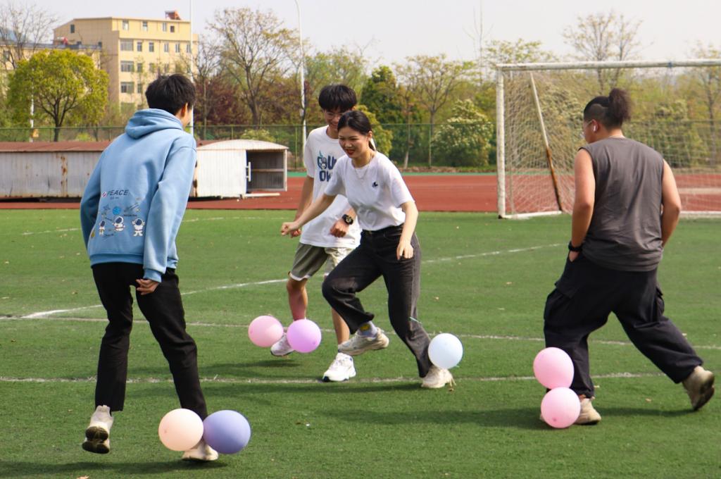 抢凳子、接力传球、夹乒乓球……六个游戏让设计学类专业2021级(1)班的同学们乐在其中。活动负责人、该班班长周辉提前一周便与该班班委们商讨活动内容,做好活动准备,“为了调动员工们的参与积极性,我们多次改善活动内容,还准备了一些零食,希望同学们能够轻松‘上阵’,享受活动过程。”