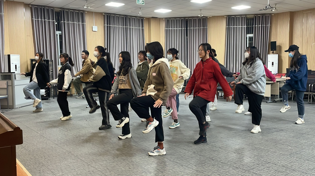 “健美操是一项集舞蹈、音乐、健身、娱乐于一体的娱乐体育项目,我们选用了网红刘畊宏《本草纲目》健身操进行视频跟跳学习,希望能够以此带动同学们参与运动的积极性。”美术学专业2021级(2)班的毕唯依作为活动负责人介绍,这套健身操运动量大、节奏性强、动作多样,是时下热度很高的健身方式,希望同学们在跟跳过程中能够有所收获。