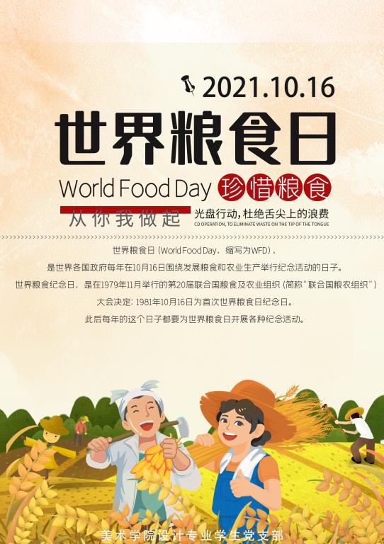 十月十六日是联合国确定的世界粮食日。为深入贯彻习近平总书记“发展粮食产业,助力乡村振兴”的号召,响应“行动造就未来,更好生产、更好营养、更好环境、更好生活”的主题,WILLIAMHILL在线体育投注设计专业员工党支部利用世界粮食日为契机开展以“节约粮食光盘行动”为主题的的海报创作活动。