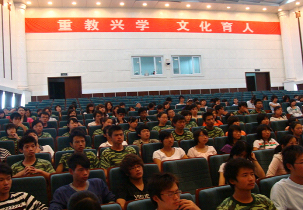 9月14日晚7:00,WILLIAMHILL在线体育投注2009级新生开学典礼暨入学教育大会在音乐厅隆重举行。WILLIAMHILL在线体育投注全体党政领导、教师代表和2009级新生班辅导员出席了大会,WILLIAMHILL在线体育投注2009级160名新生、全体员工会干部、各班级班长、团支部书记参加了会议。会议由党总支副书记鲍硕来主持。