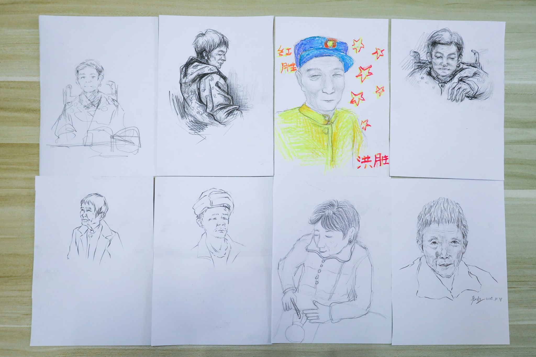 绘画区一旁,设计学类专业2025(2)班的徐晓希正为一位奶奶绘制速写画像。“这是我第一次真人现场写生,现场人物的动态变化带来了全新挑战,需不断调整位置优化观察角度,但爷爷奶奶们亲切的脸庞和温暖的话语让我格外投入。”她坦言,这次经历不仅提升了她的人物观察能力,更让她体会到“以己所长暖人所需”的价值。