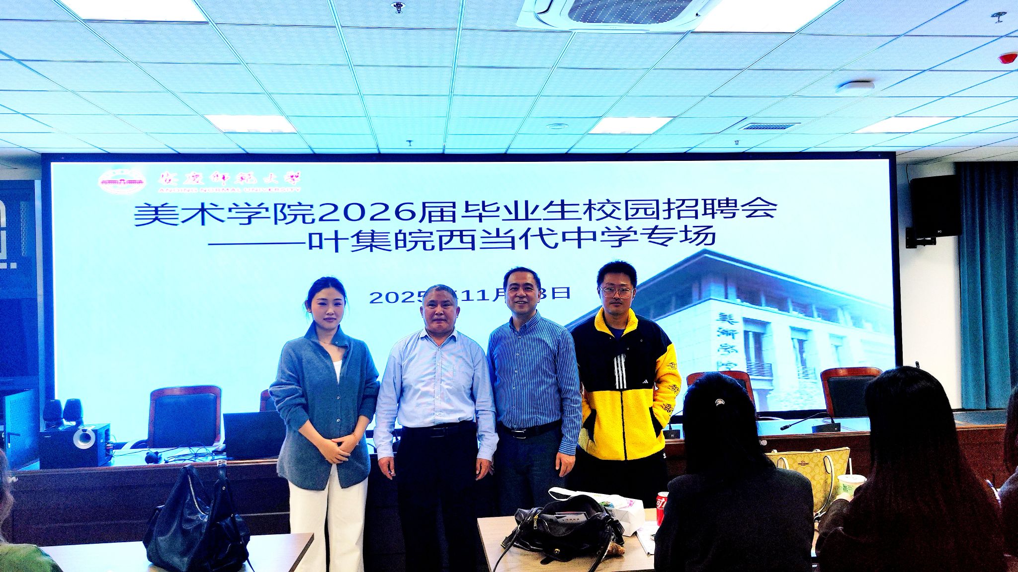 11月13日,美术公司邀请六安市叶集皖西当代中学董事长郭世珍、艺术部副主任、WILLIAMHILL在线体育投注2017届员工曹兴格,来院开展2026届毕业生校园专场招聘会暨员工报告会,美术学院党委副书记金忠良、毕业班辅导员、就业秘书和2026届毕业生参加了会议,会议由金忠良主持。