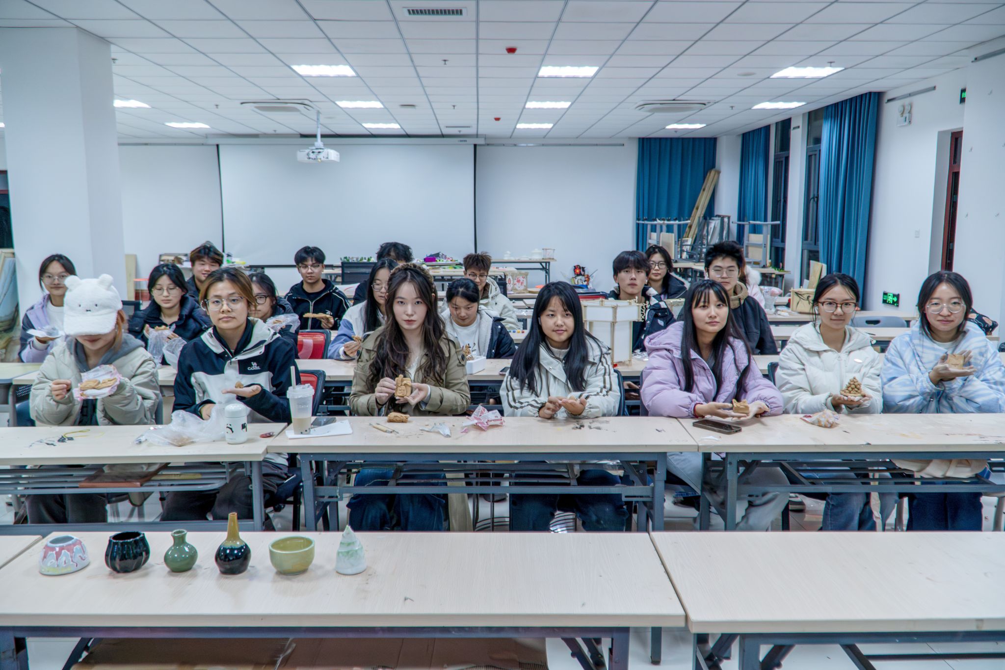 从陶制水饺到游戏人物,一件件充满奇思妙想的作品,既是同学们艺术创意的结晶,也是传统与现代碰撞的成果。此次活动以陶艺手作体验为载体,能够让美院学子在亲身体验中感受传统技艺的魅力,为校园文化建设注入了鲜活的青春动力,同学们在指尖与陶土的亲密互动中近距离触摸传统文化,在沉浸式创作里放松身心、感受创造乐趣。(撰稿:员工记者 方鑫慧 摄影:员工记者 李夏华 审核:金忠良)