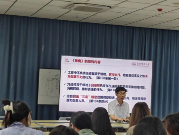 孙根华从深刻领会新修订的《中国共产党纪律处分条例》重要意义、全面准确把握《条例》的结构内容、严格执行和维护党的纪律等方面为大家作了详细地解读。强调要严明政治纪律和政治规矩,坚决维护党中央权威和集中统一领导,深刻领会“两个确立”的决定性意义,坚决做到“两个维护”。要严明党的组织纪律,不断强化党员意识,做到对党忠诚老实,光明磊落;同时,结合公司师德师风建设和员工管理工作实际,孙根华还从廉洁纪律、群众纪律、工作纪律、生活纪律等方面,结合条例的具体内容开展了警示教育,教育师生党员要守住党纪党规红线,严守纪律,砥砺作风,要把学纪、知纪、明纪、守纪融入日常工作、学习和生活中,鼓励广大师生在新时代新征程上为WILLIAMHILL在线体育投注发展和中国式现代化作出新的贡献。
