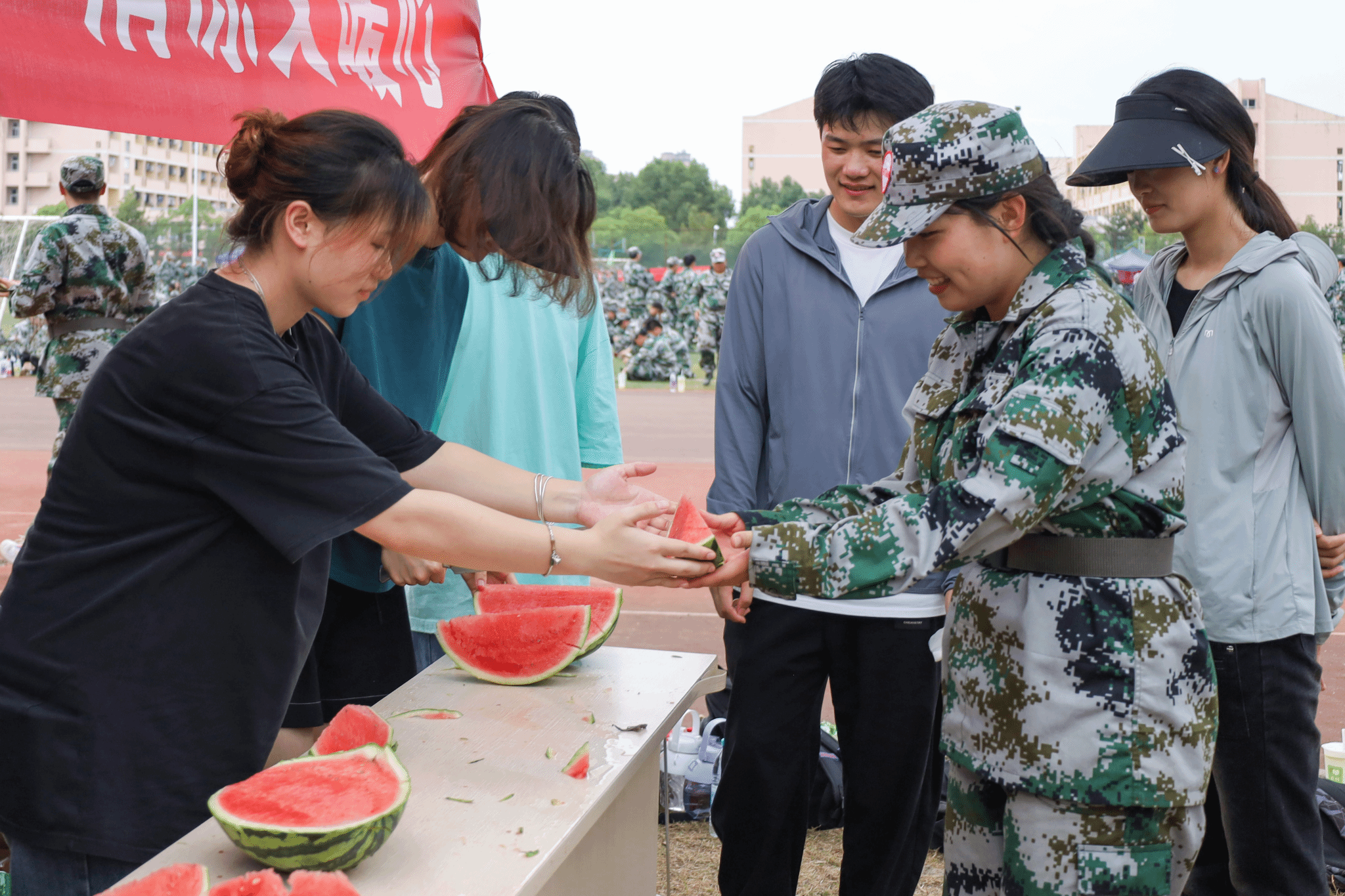 “西瓜是公认的‘解暑神器’,在军训期间为新生们送来西瓜和冷饮能够为他们消暑,缓解军训长时间暴晒的不适感。”单冠瑞表示,希望新生们能够感受到公司的关怀与学姐学长们的热情,将公司当作他们在公司里的“家”,以后每一年都能将这份持续了8年的温暖接续传递。(撰稿:罗佳琦 余胜兰 摄影:张素清 王安琦 审核:金忠良)