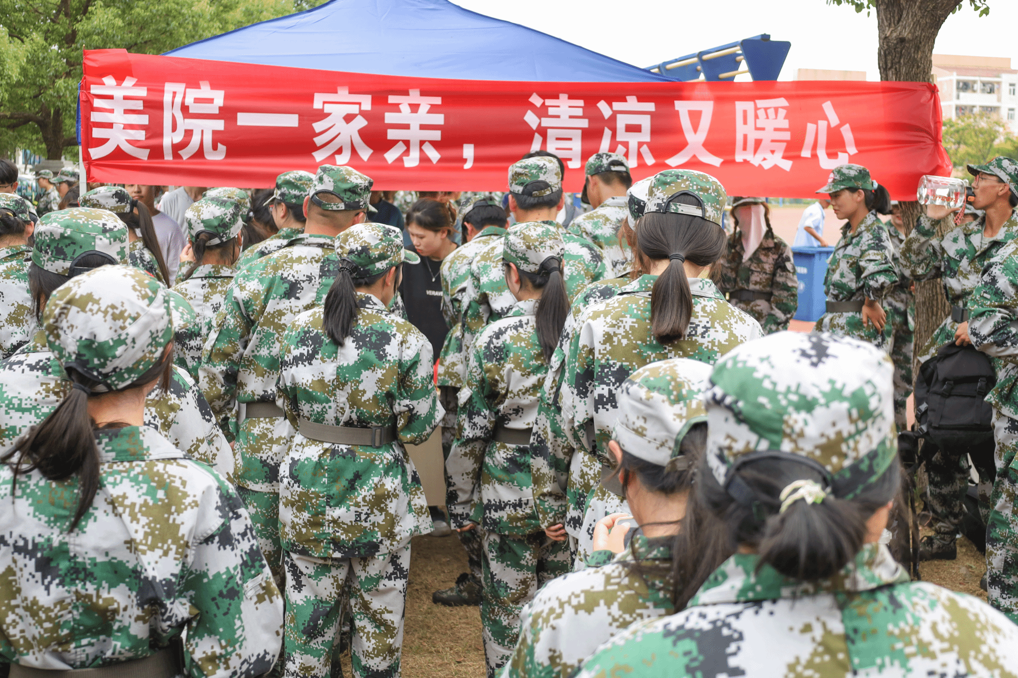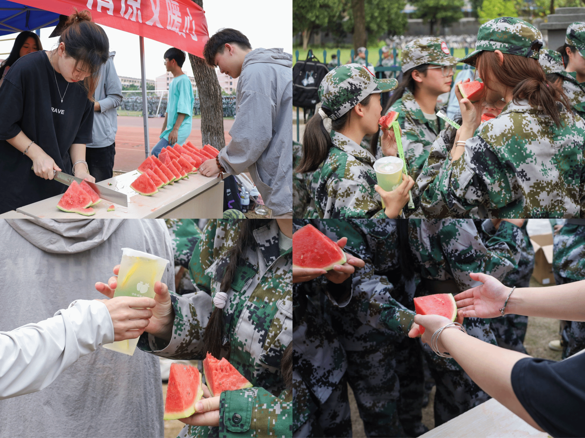听到教官宣布解散的口令后,设计学类专业2023(4)班的张文翔迫不及待地跑向公司值班点,拿到了今天分发出的第一份西瓜和冷饮。“这几天持续三十多度的高温,在拿到学姐学长递过来的西瓜和冷饮后,我的一句‘谢谢’不禁脱口而出。”张文翔表示,“送清凉”的活动让他感受到了公司的关怀,让他对日后的老员工活充满期待。