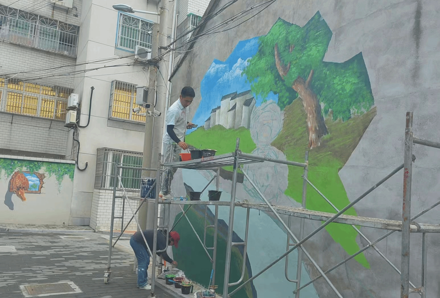 时光放映机、趣味字母涂鸦、艺术动物合集……为吸引更多游客前来留影,团队成员以“趣味动物”为元素,绘制了一处网红打卡地。“动物形象给人一种亲切感,能更好地帮助游客融入环境中。”环境设计专业2022级的王昊表示,希望通过自己的墙绘作品,为老街区增添一抹活力与色彩。