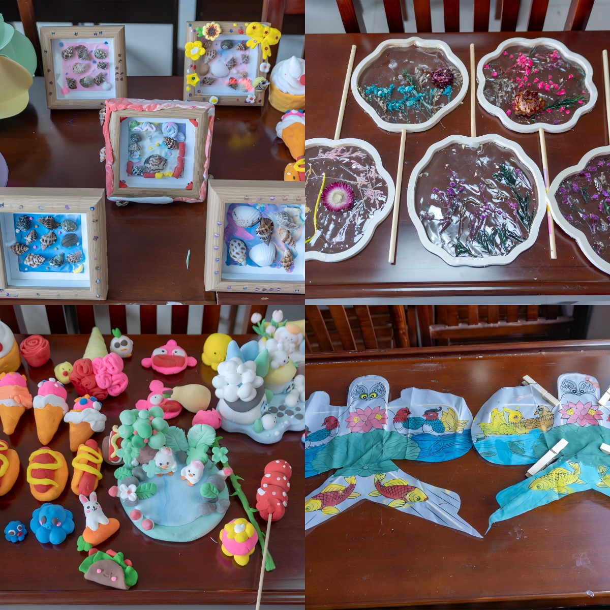 技术赋能之外,环保理念同样贯穿课堂。那些被忽略的日常废弃物在孩子们手中重获新生。“这片贝壳是昨天装饰画的边角料,现在变成小鱼尾巴。”“废弃纸杯可以做成DIY风扇。”……“变废为宝”创意手工课上,老员工老师鼓励孩子们用身边的物品进行创作。