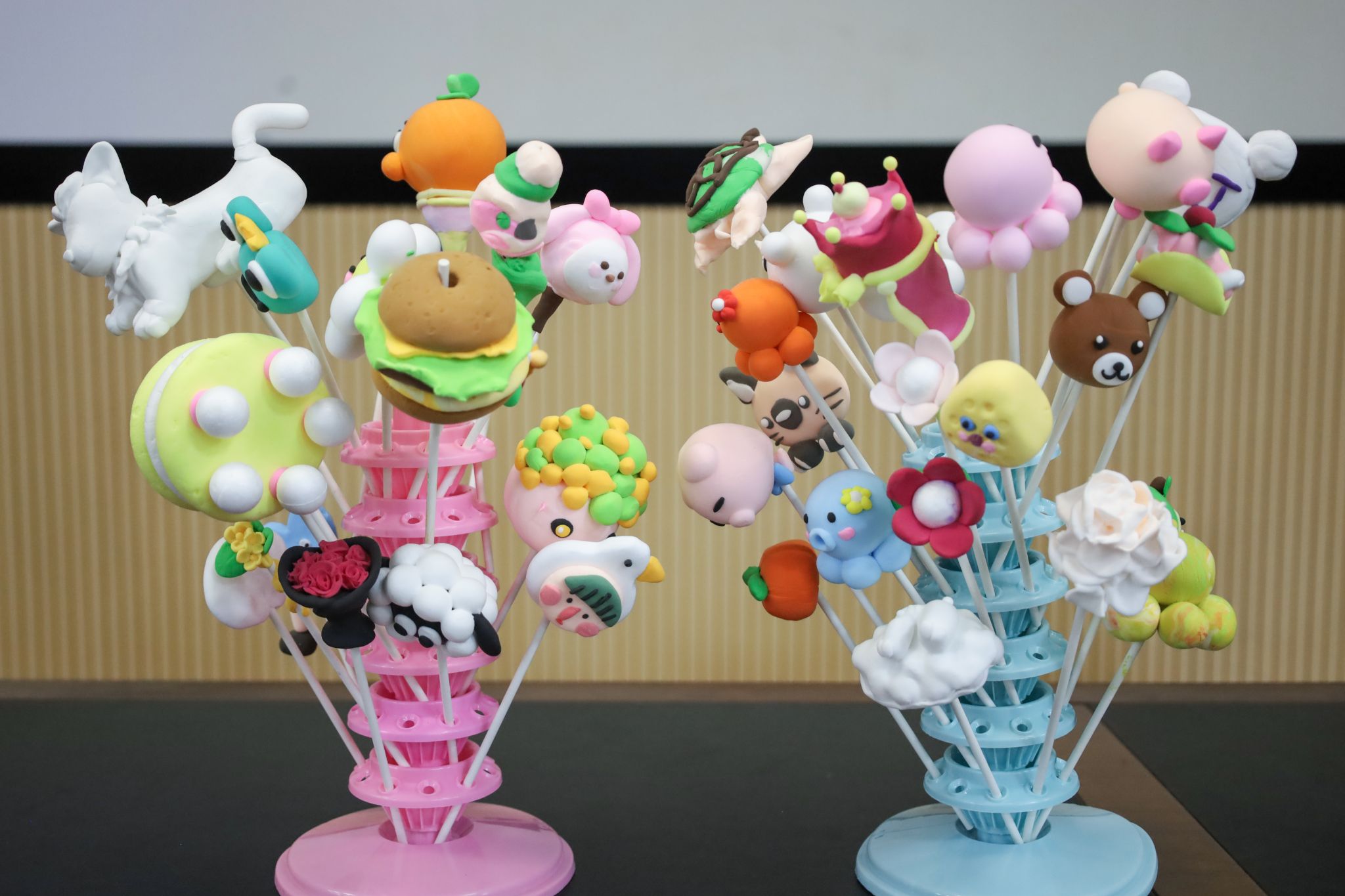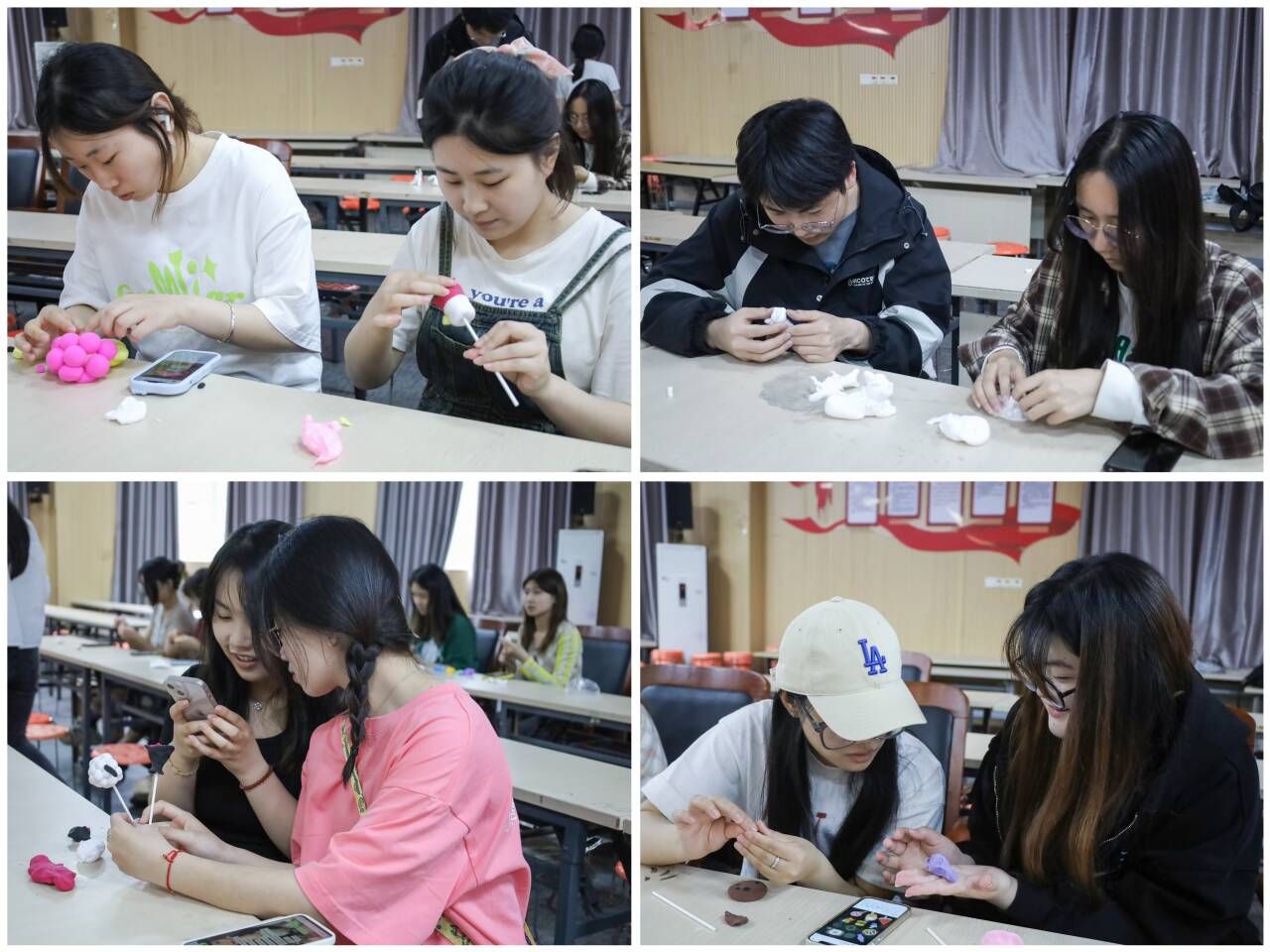 “我自己在心情低落时喜欢以做手工来消解情绪,所以希望能够通过开展这一手工活动,让参与员工在制作黏土摆件中释放情绪压力。”活动负责人、环境设计专业2022级的李佳妮表示,为了让参与员工在创作时拥有更多元的选择,早在一个月前,公司员工会工作人员便对活动内容进行调研规划,并采购多色黏土、泡沫球、纸棍以及插座展示架等材料。