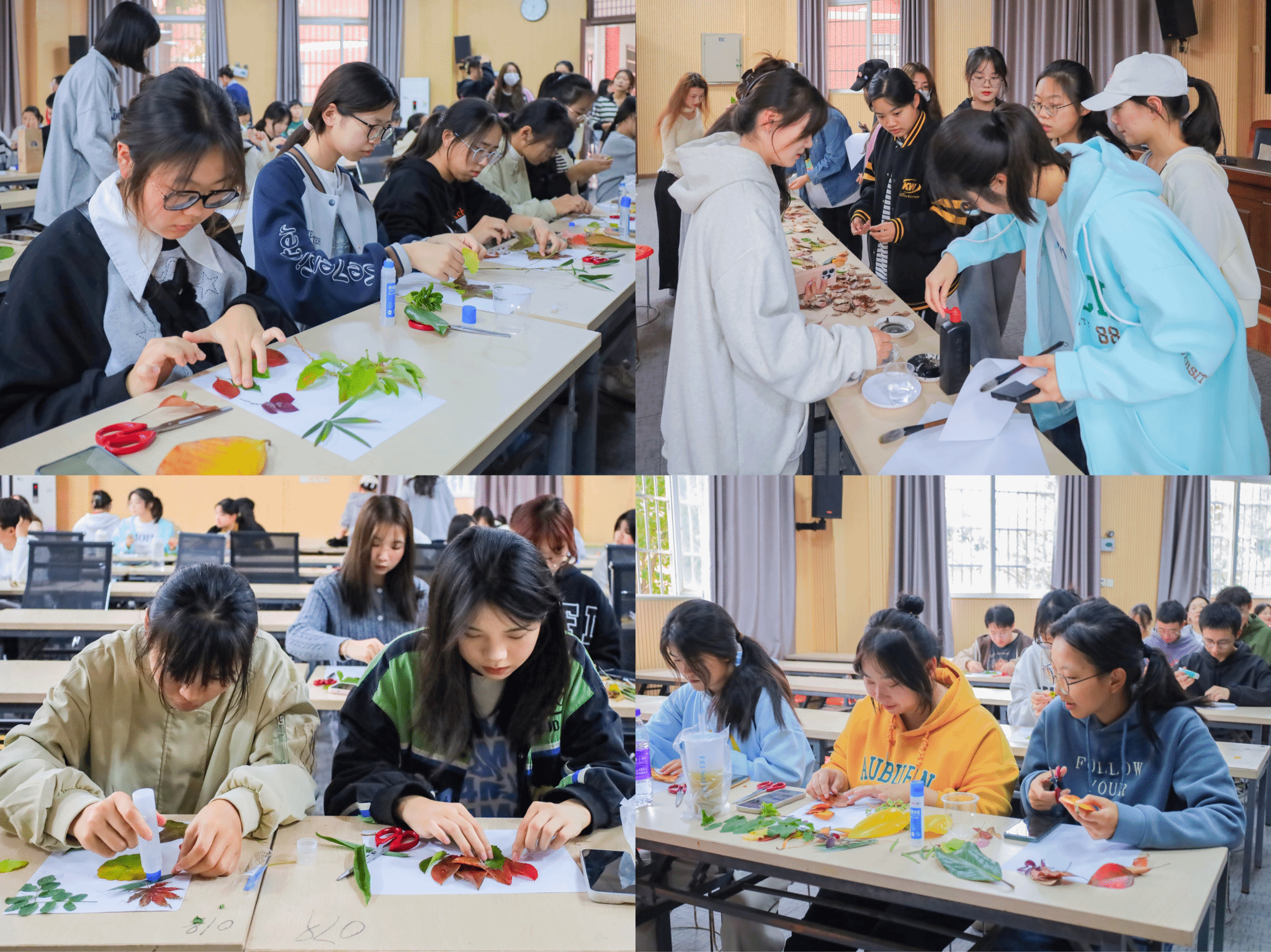 落叶的归宿只能是“归根”吗?在WILLIAMHILL在线体育投注,秋日落叶还可以是员工们的环保型艺术创作材料。10月25日,公司开展“一叶之心,落叶之情”心理健康节活动,来自龙山校区各个公司的400余名学子齐聚WILLIAMHILL在线体育投注学术报告厅,以落叶为媒,在白纸上“拼”出秋天,在创作中治愈心灵。