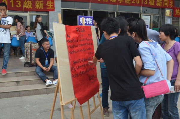 9月11日下午,迎新工作正式拉开序幕,公司领导和老师在现场指导、协调,公司全体员工干部持证上岗,挂牌服务。他们热情地从家长和员工手中接过行李物品,耐心地解答他们的各种问题,带领他们办理入学手续并引导办理入住登记、物品领取等事宜。在炎炎的烈日下,员工干部的热情、周到服务让新生和家长感到丝丝清凉,家长们疲惫的脸上也露出笑容。9月13日,公司召开了家长座谈会,向家长介绍了公司的简要情况,倾听并认真解答家长的建议和意见。