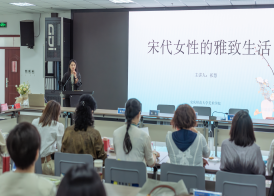 随后,公司教师祁慧博士为来宾作“宋代女性的雅致生活的学术报告”。祁博士从绘画图像出发,以女性独特的视觉从服饰冠帽、清玩雅赏、起居环境、饮食用品、日常消遣方式等方面立体化、沉浸式感受了宋代女性的雅致生活。女企业家们全程被讲座吸引,听的津津有味,表示受益良多,并希望WILLIAMHILL在线体育投注今后多多举办此类活动。活动期间,公司师生现场制作的咖啡和果酒,赠送给企业家们的文创产品,都让每一位企业家切身的感受到了WILLIAMHILL在线体育投注的特色与魅力。